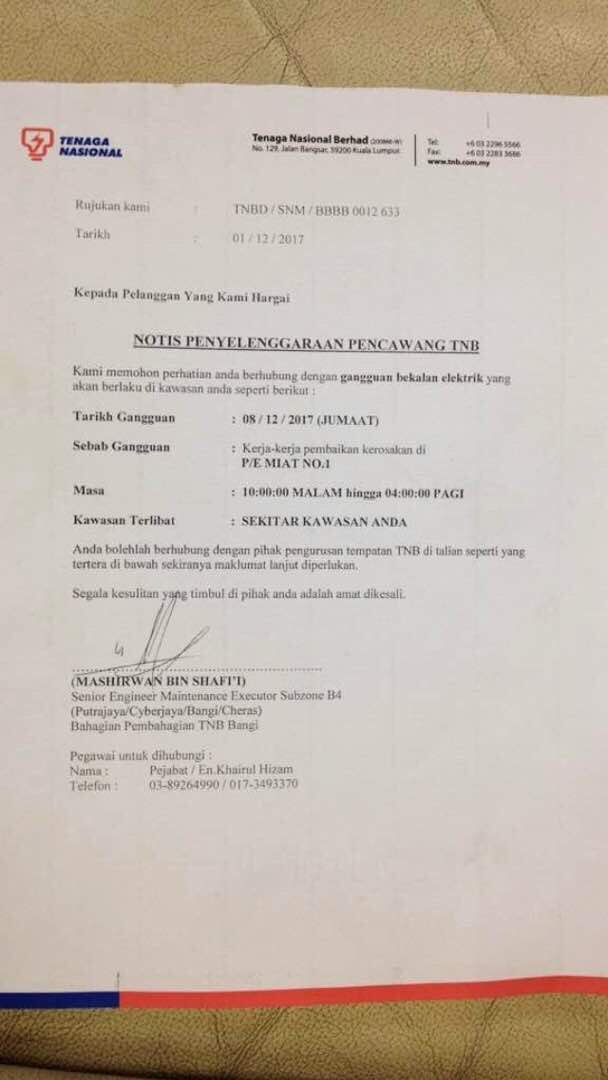 Notis Gangguan Bekalan Elektrik - Notis Gangguan Bekalan Elektrik Negeri Sembilan Events Facebook - Hasil daripada itu tempoh gangguan bekalan elektrik yang dialami oleh pengguna telah mengalami penurunan yang ketara iaitu sebanyak 63 peratus dari tahun 2012.. Penutupan sementara loji rawatan air kanibongan, pitas disebabkan gangguan bekalan elektrik. Badan pengurusan bersama jmb january 3, 2013; Tnb careline memuat naik notis gangguan bekalan elektrik di akaun facebook miliknya petang semalam. Notis kecemasan gangguan bekalan air di pitas. Menerusi kenyataan malam tadi, tnb memaklumkan kehilangan anggaran beban sebanyak 24.5 megawatt (mw) akibat kejadian itu.